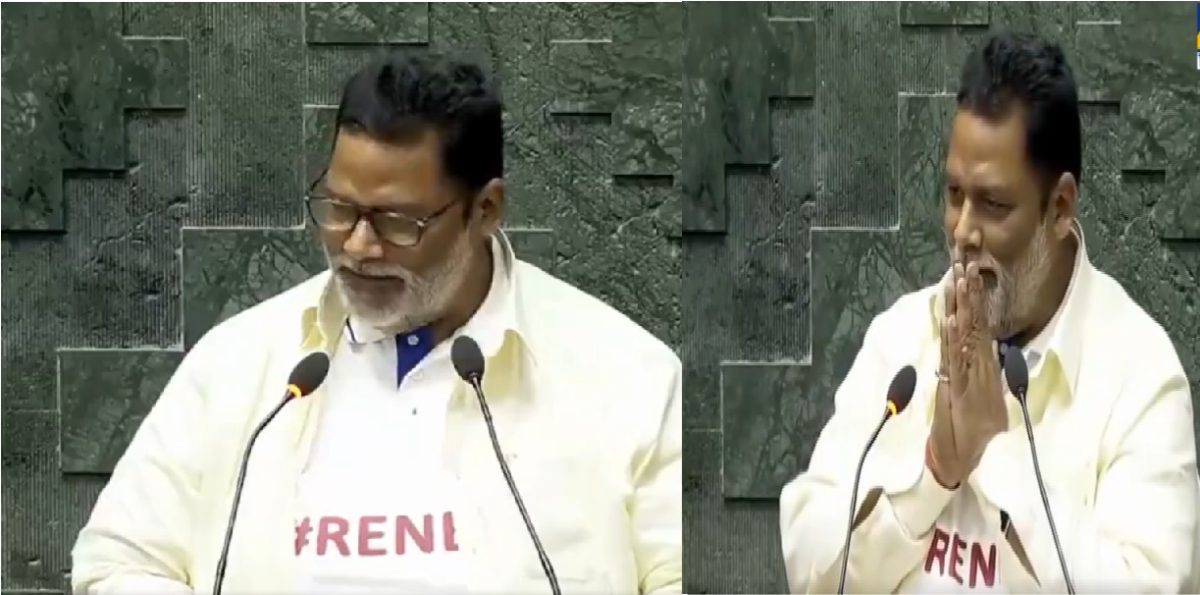 मैथिली में शपथ लेते हुए पप्पू यादव ने पहनी RENEET की टी-शर्ट